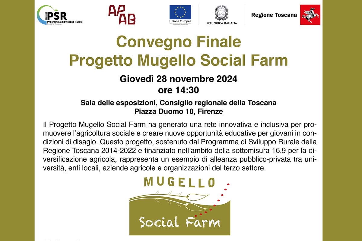 - Divulgare e valorizzare il ruolo delle aziende agricole nell’ambito dell’agricoltura sociale al fine di renderle soggetti sempre più attivi nel territorio del Mugello, nella realizzazione di attività agricole sociali.