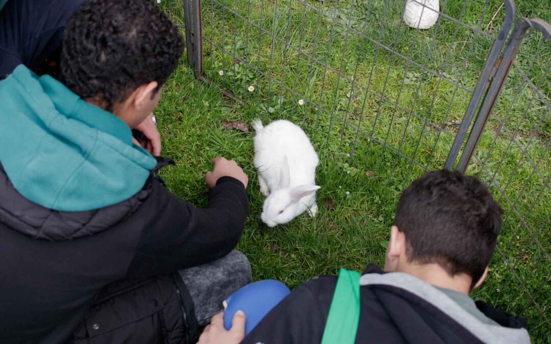 Elena ci ha portato alcuni suoi conigli, che abbiamo potuto toccare e carezzare, una sensazione morbidissima. Erano spaventati ma si lasciavano coccolare amichevolmente.
